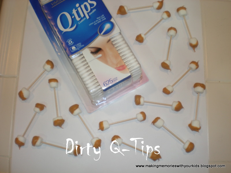 Dirty Q Tip Snacks 2023. First of all, use a strong pair of scissors (or even garden shears) to snip off the ends of the Q-Tips. Next you will need to melt your caramels. Push a marshmallow onto each end of the pocky sticks. Be careful not to over cook and burn them. Once creamy, use the tip of a spoon to wipe a small amount of the. Some of the menu ideas include scabs & pus, dirty diaper, rat droppings, dirty band-aids, ear wax and a plate of worms. Pour the melted chocolate into a decorating bag and cut a small tip off the end. Break the uncovered ends of the pocky off.